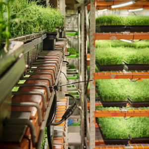 Our farms use up to 95% less water than traditional agriculture. Controlled LED lighting reduces energy waste, and modular layouts ensure every square metre of space is productive — no idle land, no wasted resources.